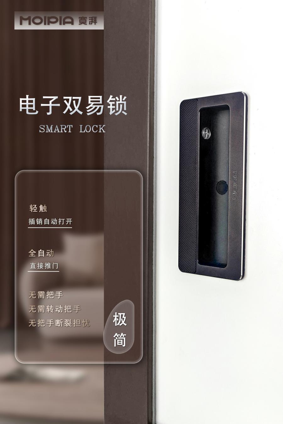 电子双易锁 极简、轻触插销自动打开 全自动、直接推门 无需把手、无需转动把手、无把手断裂担忧